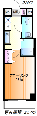 | 専有面積 | 24.7 ㎡ | 帖数 | 1K |